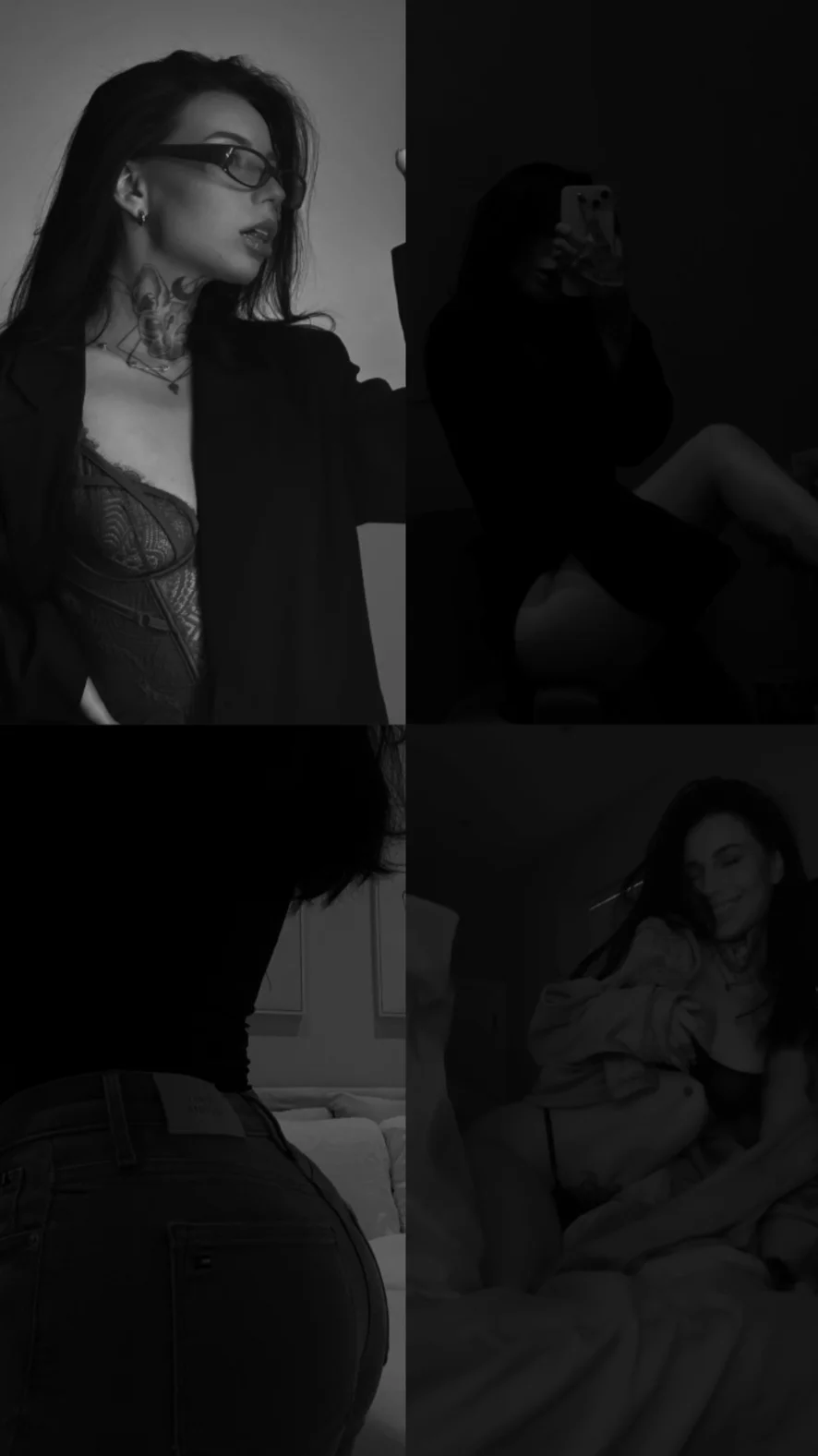 Pokazivanje, Potpetice, Show s uljem, Spanking, Toples, Korzet, Kostimi, Pseća poza, Erotski ples, Fetiš stopala, Lizanje stopala, Lateks, Koža, Igra uloga, Seks Igračke, Twerk, Squirt, Tuširanje, Orgazam, Masturbacija, Ljubavnica, Prstenjanje, Prljavi razgovor, Dildo ili vibrator, Camel Toe, Analno